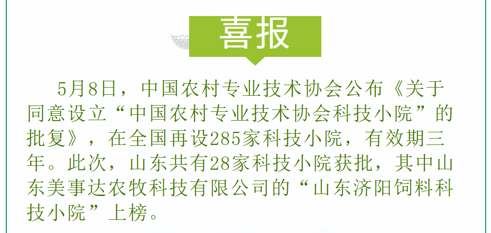 · 美事達(dá)再添新身份“動(dòng)物營(yíng)養(yǎng)與健康養(yǎng)殖濟(jì)南市工程研究中心”